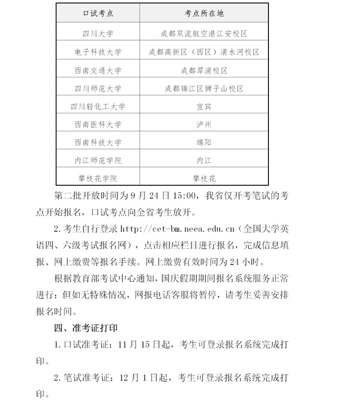 四川省2021年下半年全国大学英语四、六级考试报名通告