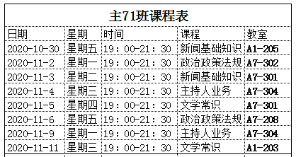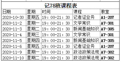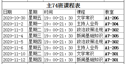 附:各班课程表