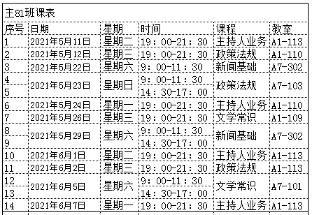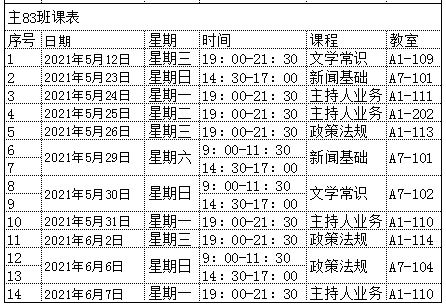 主持人资格证课程表: