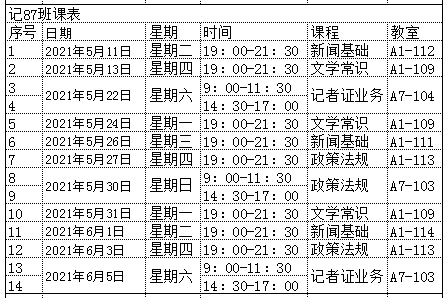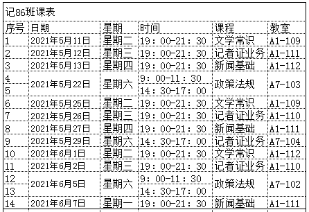记者资格证课程表: