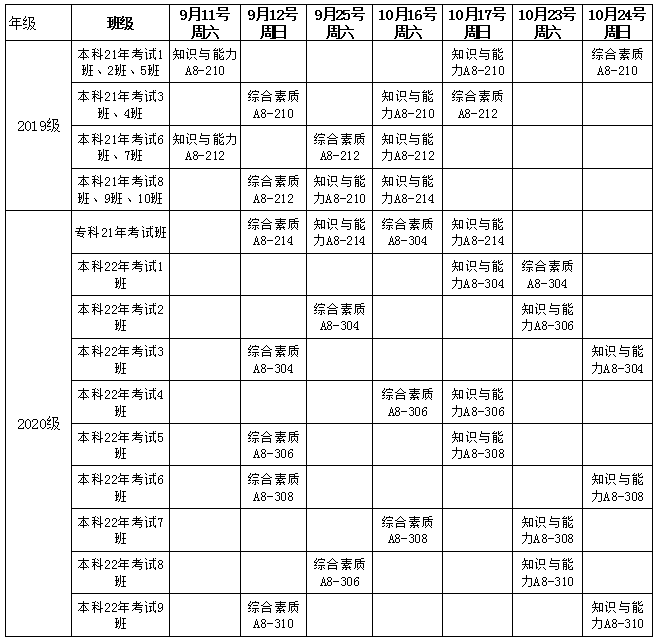 2019、2020级教师资格证培训将于9月11日继续上学期的课程,课程安排公布如下: