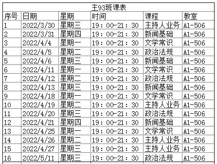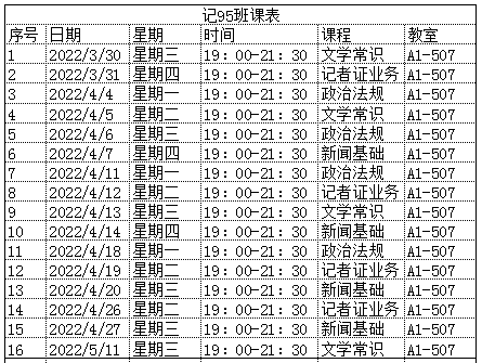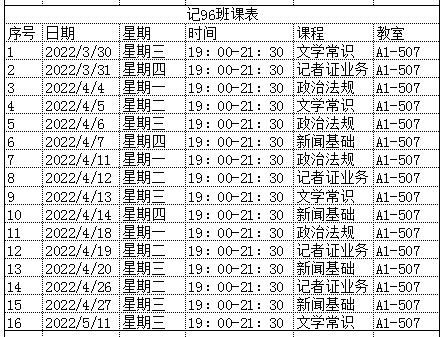 以下是课程安排: