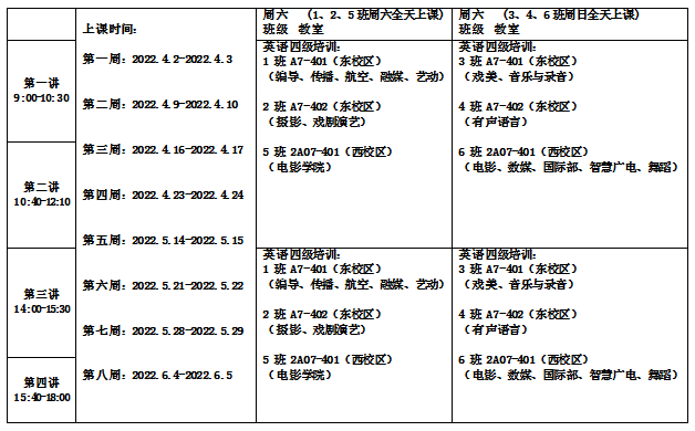 英语四级将于本周开课