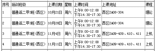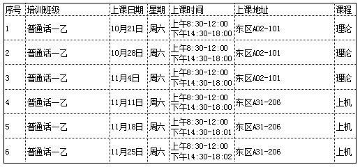 普通话一乙、二甲将于10月21日(周六)开课。
