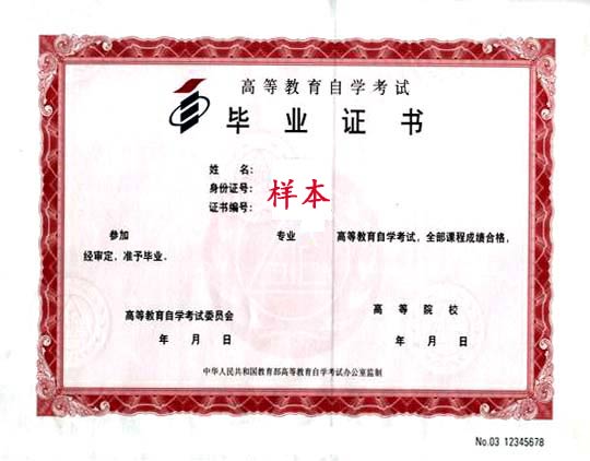 3、毕业证书发放:学员修满规定的学分,完成毕业论文后,颁发由四川省自考委验印的所报院校自学考试本科毕业证书,国家承认其学历。